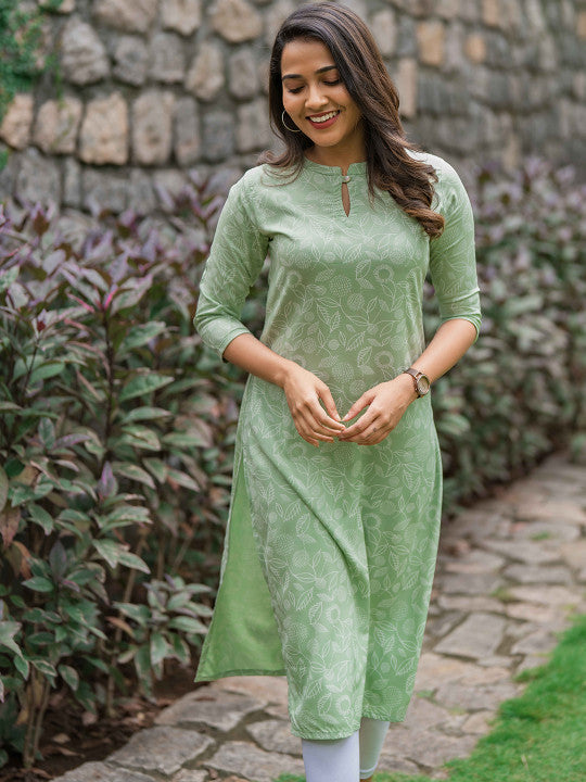 Mint Green Floral Comfort Kurti